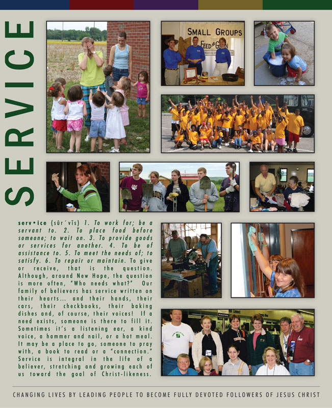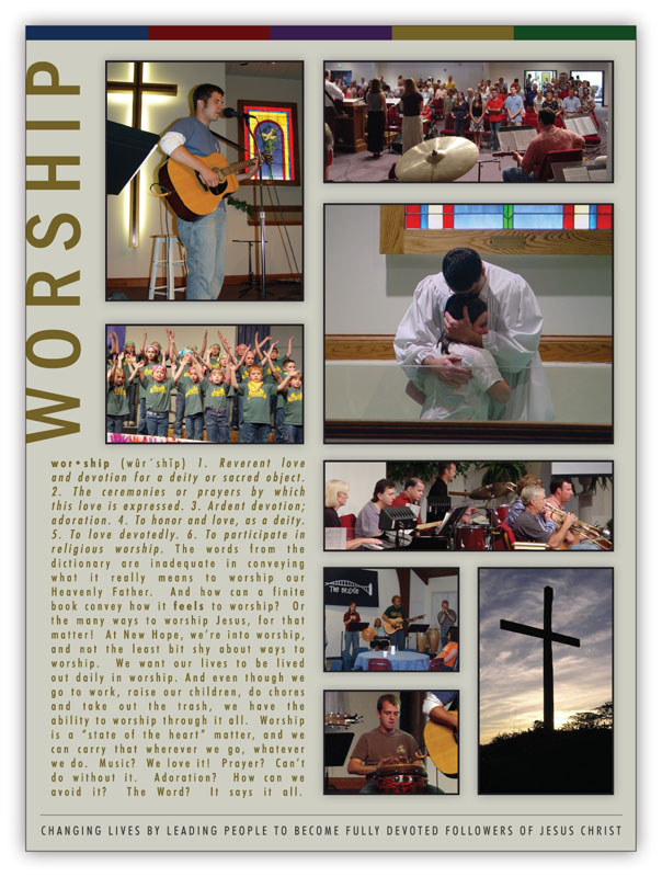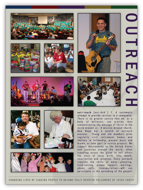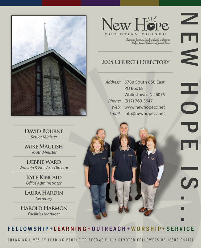 The cover and activity pages for New Hope’s 2005 Church Directory.